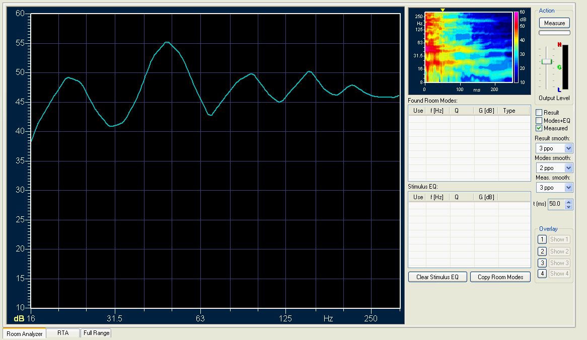 3. DELTemu procesu je sledila zaključna faza ponovnega preverjanja vseh osnovnih parametrov in ponovna nastavitev V4 bas trapov ter kombiniranje obeh tehnik manipulacije odprtin na lažni steni in na koncu se je za najboljšo kombinacijo izkazala popolna zapora zgornjega dela stene in pena ob straneh in spodnja meritev govori sama zase. Tudi subjektivni rezultati so potdili meritve.